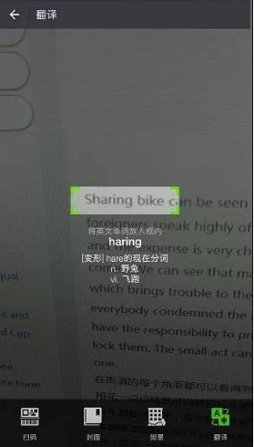 邯鄲微信開發(fā))掃一掃不再是只能翻譯單詞。點擊翻譯后,掃描頁面就變成全屏的,還添加了一個拍照的按鈕。點擊拍照按鈕之后,它就開始掃描整個頁面上的單詞。