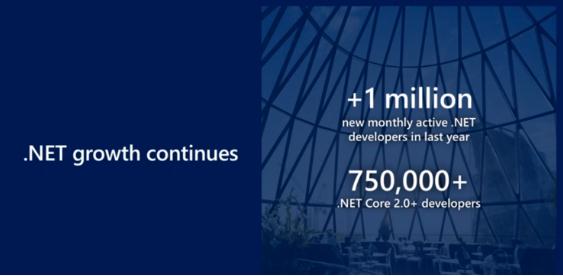 微軟在現場承諾,將在 .NET Core 上為這些框架做出貢獻。第一波代碼將于今天在 GitHub 上發布,未來幾個月將出現更多代碼。據最新數據,目前 GitHub 擁有 2800 萬開發者。