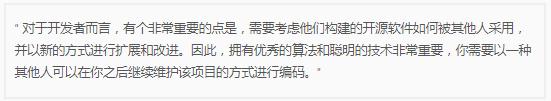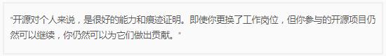 Doug Cutting 認為所有軟件者都應該將開源納入自己的職業規劃, 因為會有更多雙眼睛看到你的代碼。你會擁有一個更大的社區,他們知道你正在做什么,他們會給你提交建議和反饋,他們可以直接參與你的項目,這對你的職業生涯有益。