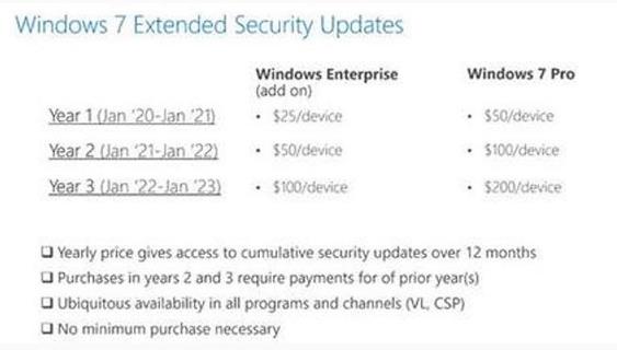 Windows7系統(tǒng)將于明年1月14日結(jié)束免費(fèi)的擴(kuò)展技術(shù)支持服務(wù),也就是不再對(duì)個(gè)人和普通企業(yè)用戶分發(fā)任何安全補(bǔ)丁。