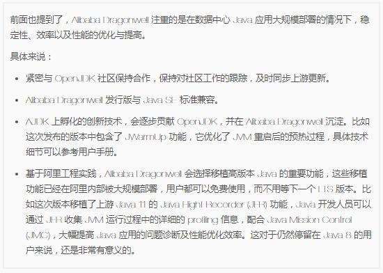 前陣子 AWS 也推出了自己的 OpenJDK 發行版 Corretto;再往前,其實 Azul 與 Red Hat 等廠商也有提供 OpenJDK 版本。那么阿里的 Dragonwell 有什么優勢、特點呢?