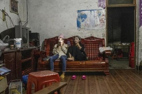 銅關(guān)村的兩名年輕姑娘正在拿智能手機(jī)連接網(wǎng)絡(luò)看視頻。