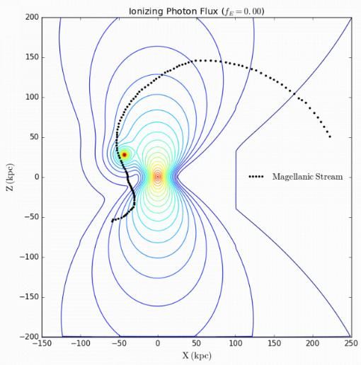 麥哲倫流是小麥哲倫云和大麥哲倫星系留下的氣體痕跡,小麥哲倫云和大麥哲倫星系是繞銀河系運轉的兩個矮星系。這種非常暴力的行為,讓麥哲倫流散發出奇怪的輝光,而這種輝光基本上無法解釋,但是在先前的研究中,研究人員認為,塞弗特耀斑發出的紫外線會導致麥哲倫流中的氫以特定波長發光。