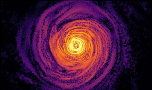 科學(xué)家用計(jì)算機(jī)模擬了類似心宿三的磁星是如何誕生的。該圖像是軌道平面的剖面圖,其中的填色代表了磁場(chǎng)的強(qiáng)度,而淺色的剖面線則反映了磁場(chǎng)線的方向