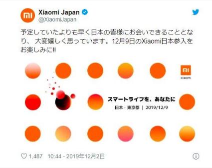 此前,小米公司高級(jí)副總裁王翔宣布將于 2020 年進(jìn)入日本智能手機(jī)市場(chǎng)的消息,今日,小米在推特發(fā)文稱,原定進(jìn)入日本市場(chǎng)時(shí)間提前。有消息稱,小米于本月 9 日發(fā)布將投入日本市場(chǎng)的智能手機(jī)和家電制品。