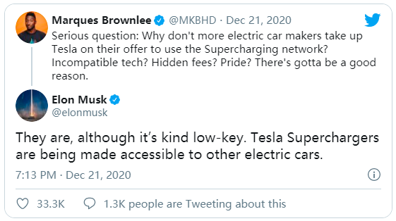 昨日,馬斯克再次證實,其他品牌的電動汽車可以使用特斯拉超級充電樁,但他沒有透露哪家公司正在研發與特斯拉充電樁的兼容性。