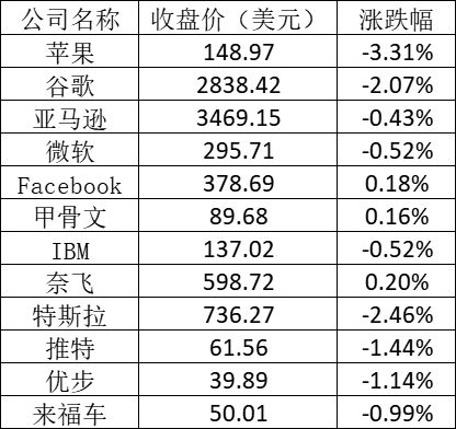 具體來說,美股中的主要科技股表現(xiàn)如下: