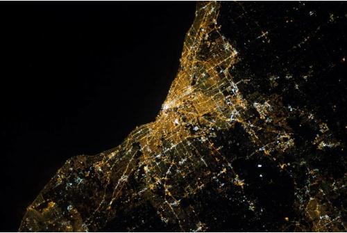 ▲ 240 英里高度的克利夫蘭夜景. 圖片來自:NASA