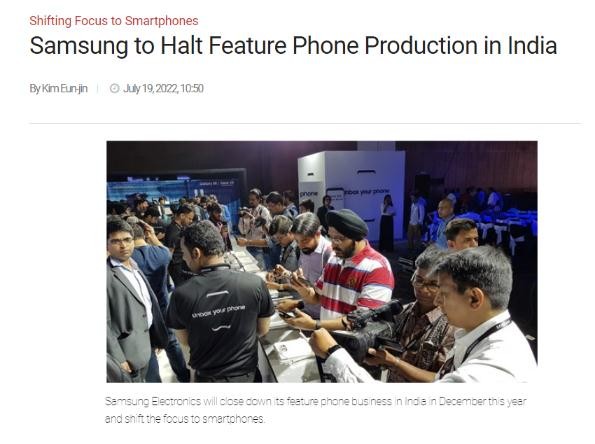 據印度媒體 7 月 18 日報道,三星電子已決定于今年 12 月關閉其在印度的功能手機業務,并將重點轉向智能手機。