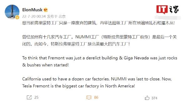 此外,馬斯克稱加州曾經(jīng)有十幾家汽車工廠,如今特斯拉弗里蒙特工廠成為北美最大的汽車工廠。