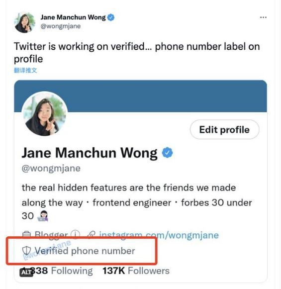 當地時間 8 月 19 日,科技媒體 The Verge 報道稱,工程師 Jane Manchun Wong 發現推特在用戶資料欄中添加了“電話號碼認證(Verified phone number)”標簽。