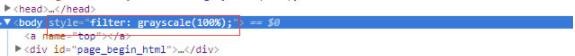 實現這種效果很簡單,只需要將css代碼:filter: grayscale(100%);放到body元素里面的style=“”中間就OK了,根本就不需要用到什么網站變灰的插件。如下圖所示: