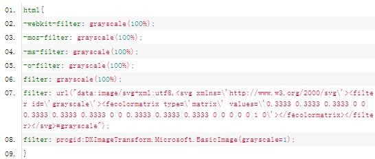 現在做網站一般在全國哀悼日、清明節、地震日時,懂事的網站長都會讓網站整體變成灰色,但是有很多新手網站長不知道怎么讓網站頁面變成灰色的,下面IT備忘錄小編就給大家分享自己搜集的比較全面的網站頁面變灰色CSS代碼,兼容所有的瀏覽器!