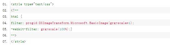 1、網頁黑白代碼外部樣式(寫入*.css文件請用)