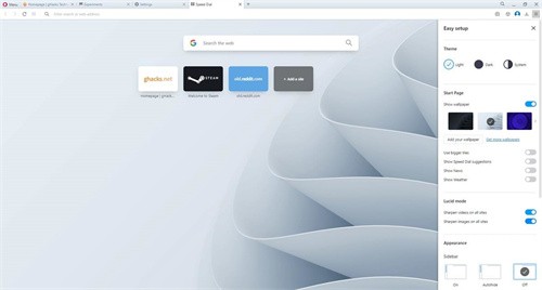 當然,你也可以從瀏覽器的設置頁面找到這些選項:opera://settings/ lucidMode