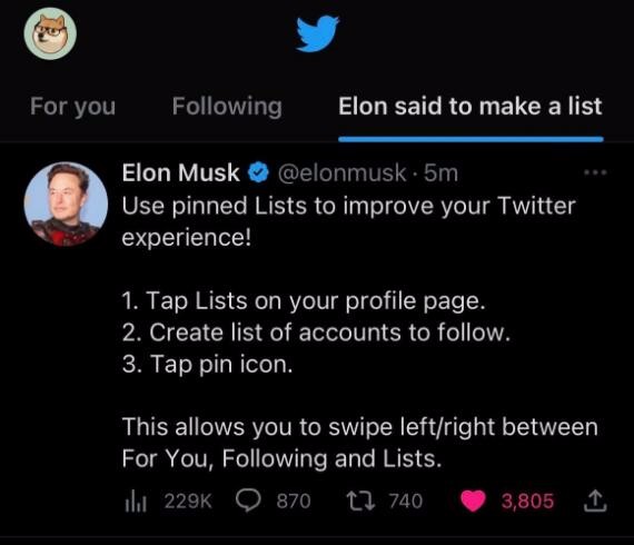 馬斯克在推文中預告了固定列表功能,并介紹了啟用該功能所需的 3 個步驟。事實上這項功能早在 2019 年就已經上線,只是用戶使用頻率并不高,最終 Twitter 回歸了正常的時間軸。