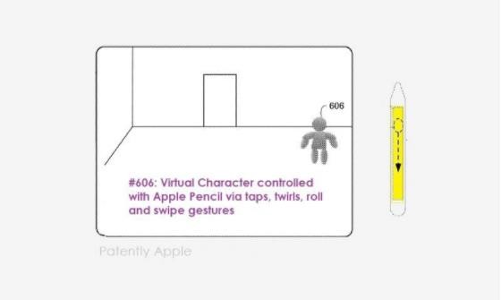該專利的主要內(nèi)容如下:在下面的圖 1 和圖 6B 上,我們看到一個(gè)用戶拿著 Apple Pencil,在這種情況下,它被用作游戲控制器來移動(dòng)對象或游戲角色,蘋果稱之為“虛擬代理”(Virtual Agent)#606。Apple Pencil 的功能將包括涉及在 Pencil 的觸摸表面上敲擊、滾動(dòng)、旋轉(zhuǎn)、輕彈和滑動(dòng)的輸入。