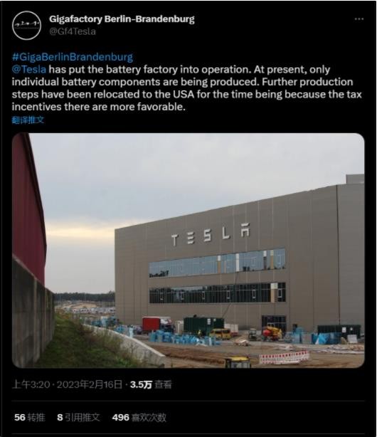 Steinbach 表示,特斯拉只在柏林超級工廠的電池工廠生產單個電池組件,這與該公司最初的計劃不同。外界認為,這應該是特斯拉考慮到美國的稅收優惠政策,故優先選擇建設美國得州超級工廠電池廠。
