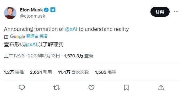 當地時間周三,馬斯克宣布 xAI 公司正式成立。馬斯克表示,推出 xAI 的原因是想要“了解宇宙的真實本質”。