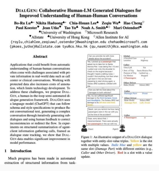 微軟聯(lián)合華盛頓大學(xué)研發(fā)團(tuán)隊(duì)發(fā)布論文 公布一款名為 DIALGEN 的產(chǎn)品 09:19:35