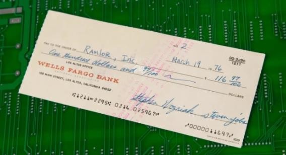 據介紹,這張支票是蘋果公司于 1976 年 3 月 19 日開出的,金額為 116.97 美元(IT之家備注:當前約 838 元人民幣),抬頭為 Ramlor, Inc. 這是一家位于帕洛阿爾托的印刷電路板制造商。這張支票是蘋果公司開設第一個銀行賬戶后發出的臨時支票,編號為“2”,它比蘋果公司正式成立的日期還要早 13 天。當時,喬布斯、沃茲尼亞克和羅納德?韋恩三人在 4 月 1 日簽署了合伙協議,正式創立了蘋果電腦公司。根據協議,兩位史蒂夫各持有公司 45% 的股份,韋恩持有 10% 的股份。此外,協議還規定任何超過 100 美元的支出都需要兩位合伙人的批準 —— 這也許是為什么這張支票需要喬布斯和沃茲尼亞克兩人的簽名的原因。基于這張支票的日期,有理由推測它與第一臺 Apple-1 電腦有關。Apple-1 是蘋果公司推出的第一款個人電腦,當時只是作為一個電路板套件供愛好者自行焊接。后來,在加州山景城的 The Byte Shop 商店老板保羅?特雷爾的建議下,蘋果公司開始提供組裝好的電腦。這張支票的起拍價為 5 萬美元以上,截止日期為 8 月 24 日。
