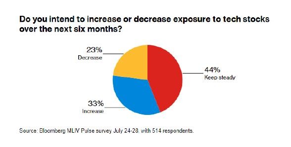 MLIV Pulse 調查涉及到的 514 名投資者中,約 77% 的人計劃在未來六個月增加對科技股的投資或保持穩定;只有不到 10% 的人認為該行業的泡沫很快就會破裂。這種樂觀情緒推動納斯達克 100 指數創下歷史最高記錄,推高了市場估值,甚至讓華爾街專業人士都感到措手不及。