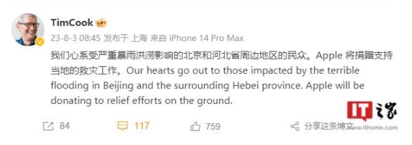 庫克:蘋果將捐贈(zèng)支持北京和河北省周邊地區(qū)救災(zāi)工作 09:45:44
