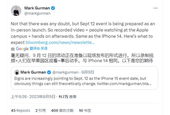 古爾曼:蘋果今年 iPhone 15 系列發(fā)布會(huì)仍采用預(yù)錄制模式 10:52:44