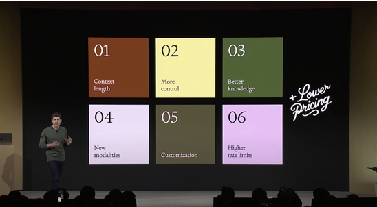 北京時間11月7日凌晨,在OpenAI的首次開發者大會上,Sam Altman公布了過去一年中OpenAI的驕人成績。