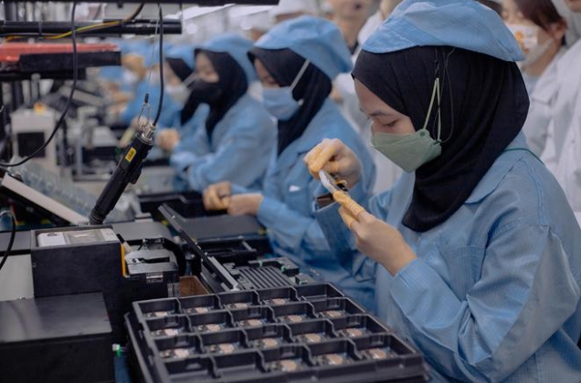 從雅加達市中心出發在擁堵的車流中行駛約兩個小時,便可抵達坐落在機場附近、占地面積13萬平方米的OPPO制造工廠。據悉,OPPO是首家在印尼設廠的中國手機廠商,該工廠自2020年開始建設,投資5億元,員工峰值為2000人,設計產能2800萬臺/年,廠區的環境和國內工廠的流水線并無二致,不同的是98%以上的員工都是印尼本地人。