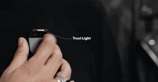 也能及時拍照和錄像。在 AI Pin 被開啟時,“信任燈”會閃爍提示周圍其他人。