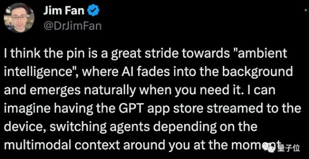 英偉達 AI 科學家 Jim Fan 評價,它拉開了“環境智能”的序幕,讓 AI 的物理存在感降低,只在你需要的時候出現。