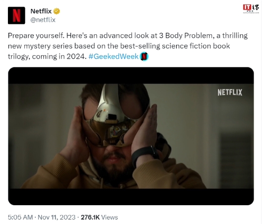 Netflix 在極客周公布了《三體》劇集的片段,并重新定檔 2024 年 3 月 21 日上線(原定明年 1 月)。