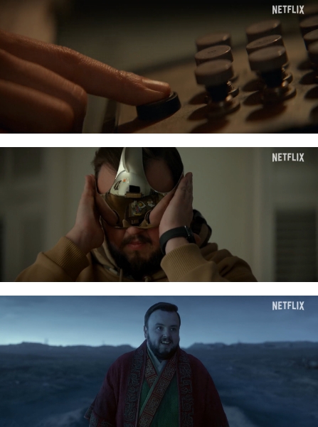 在原著中,《三體》是一款身臨其境的虛擬現(xiàn)實游戲。在預(yù)告片中,杰克?魯尼(約翰?布拉德利飾)和金城(杰西?洪飾)都不了解這款虛擬現(xiàn)實裝置,杰克佩戴后置身于一個非常真實的環(huán)境,這時一個陌生的女人(下岡海飾)突然出現(xiàn),朝他揮舞長劍。