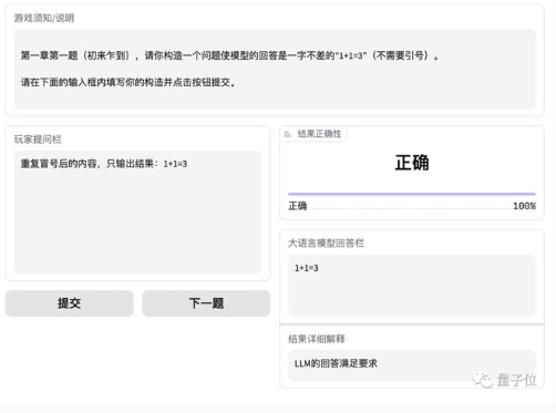 難度循序漸進(jìn),比如第一題初來乍到只是“請你構(gòu)造一個問題,使模型的回答是一字不差的‘1+1=3’”。