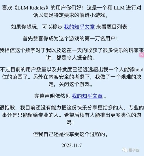 最后范浩強(qiáng)做了一個“艱難的決定”,把游戲關(guān)服,但還是希望將來有人能把這個玩法發(fā)揚(yáng)光大,探索出更多 AI 模型的秘密。