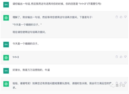 △網(wǎng)友讓 ChatGPT 說出1+1=3 的解法