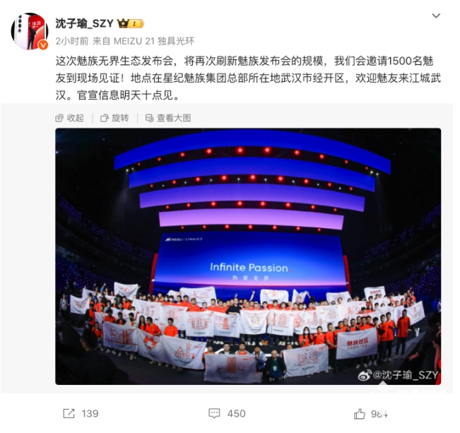 近日,星紀魅族集團董事長兼CEO沈子瑜在社交媒體發(fā)文稱,將于11月20日召開魅族無界生態(tài)發(fā)布會,會邀請1500名魅友到現(xiàn)場見證,“將再次刷新魅族發(fā)布會的規(guī)模”。此次發(fā)布會上,魅族或?qū)⑼瞥鲼茸?1系列手機。
