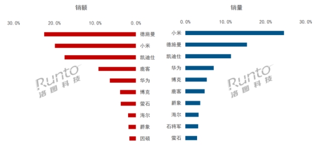 數據來源:洛圖科技(RUNTO)線上監測數據,單位:%