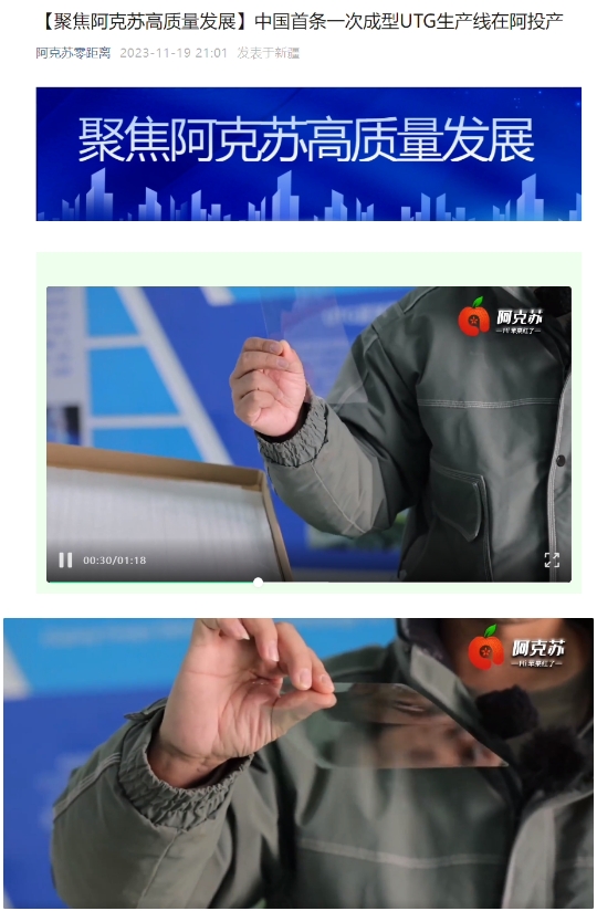 據(jù)阿克蘇地區(qū)融媒體中心“阿克蘇零距離”公眾號(hào)報(bào)道,中國(guó)首條一次成型超薄柔性電子玻璃(UTG)生產(chǎn)線在東旭集團(tuán)新疆阿克蘇光電產(chǎn)業(yè)園投產(chǎn)。