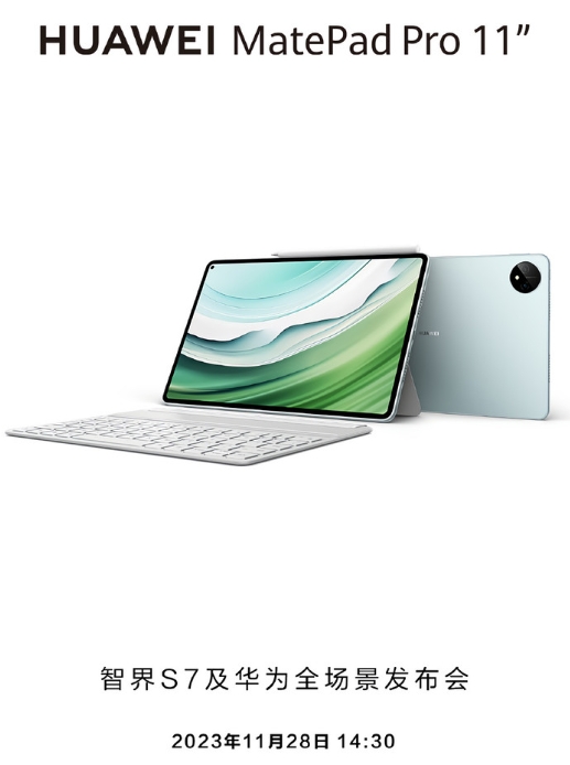 11 月 22 日,華為官方正式宣布,智界 S7 及華為全場景發布會將于 11 月 28 日 14:30 舉行,新款 MatePad Pro 11 英寸即將亮相。