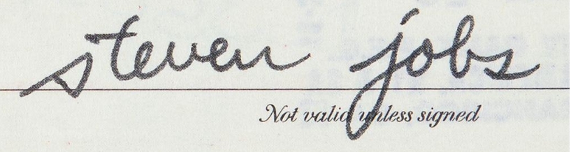 這張支票的標題是“蘋果電腦公司”,使用了蘋果的第一個官方地址,地址是“770 Welch Rd.,Ste. 154,Palo Alto”。